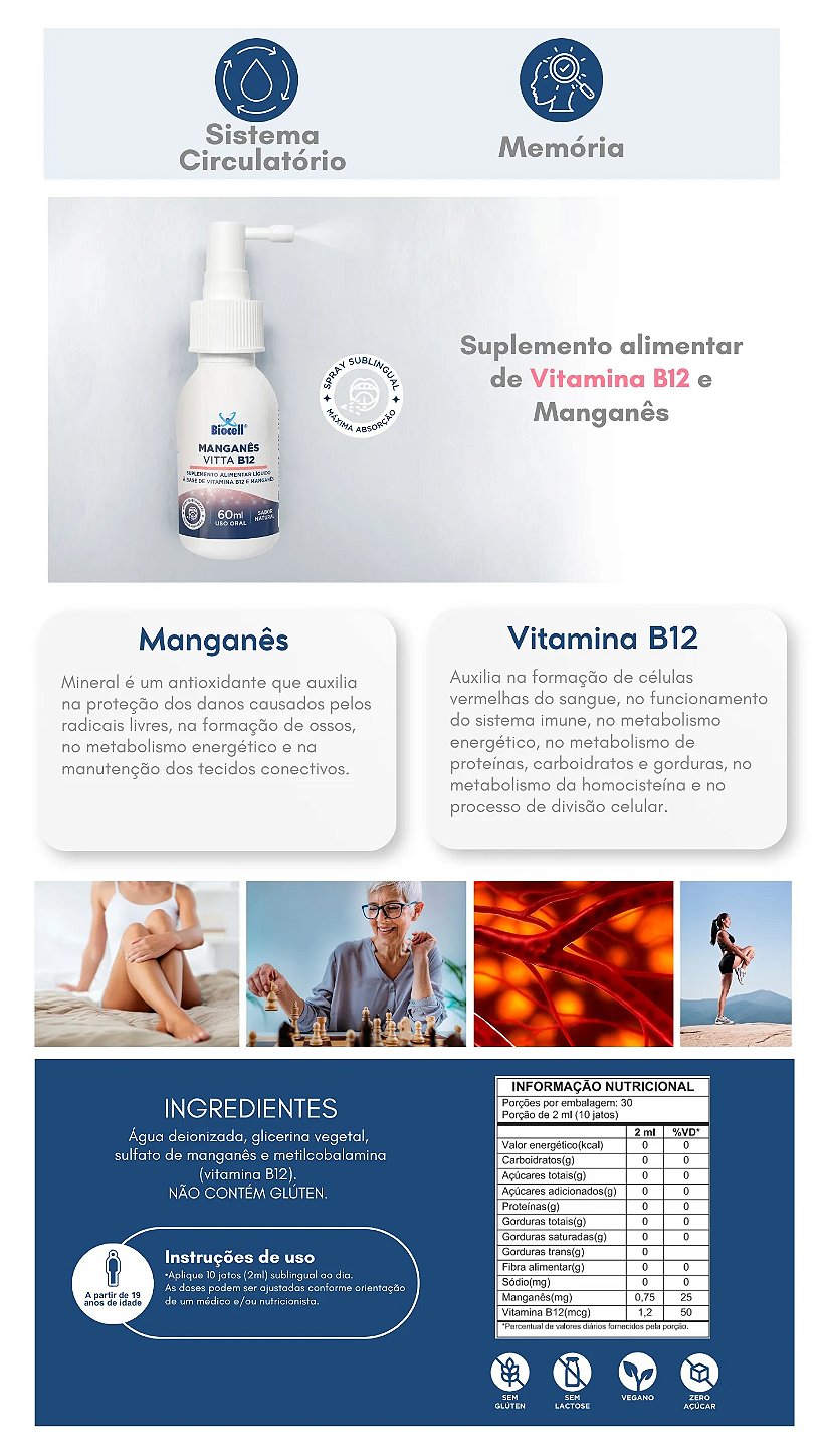 MANGANÊS VITTA B12 BIOCELL - Suplemento Alimentar Líquido Spray 60 ml